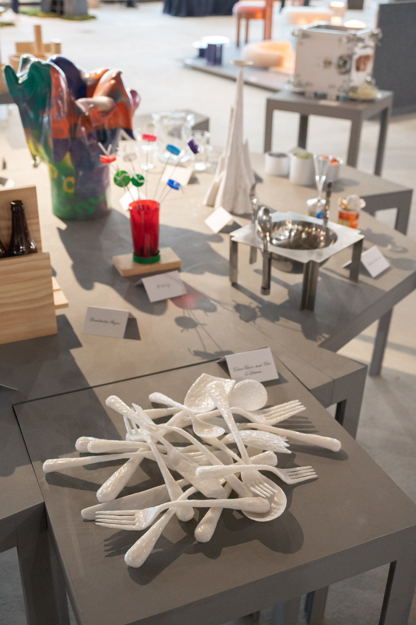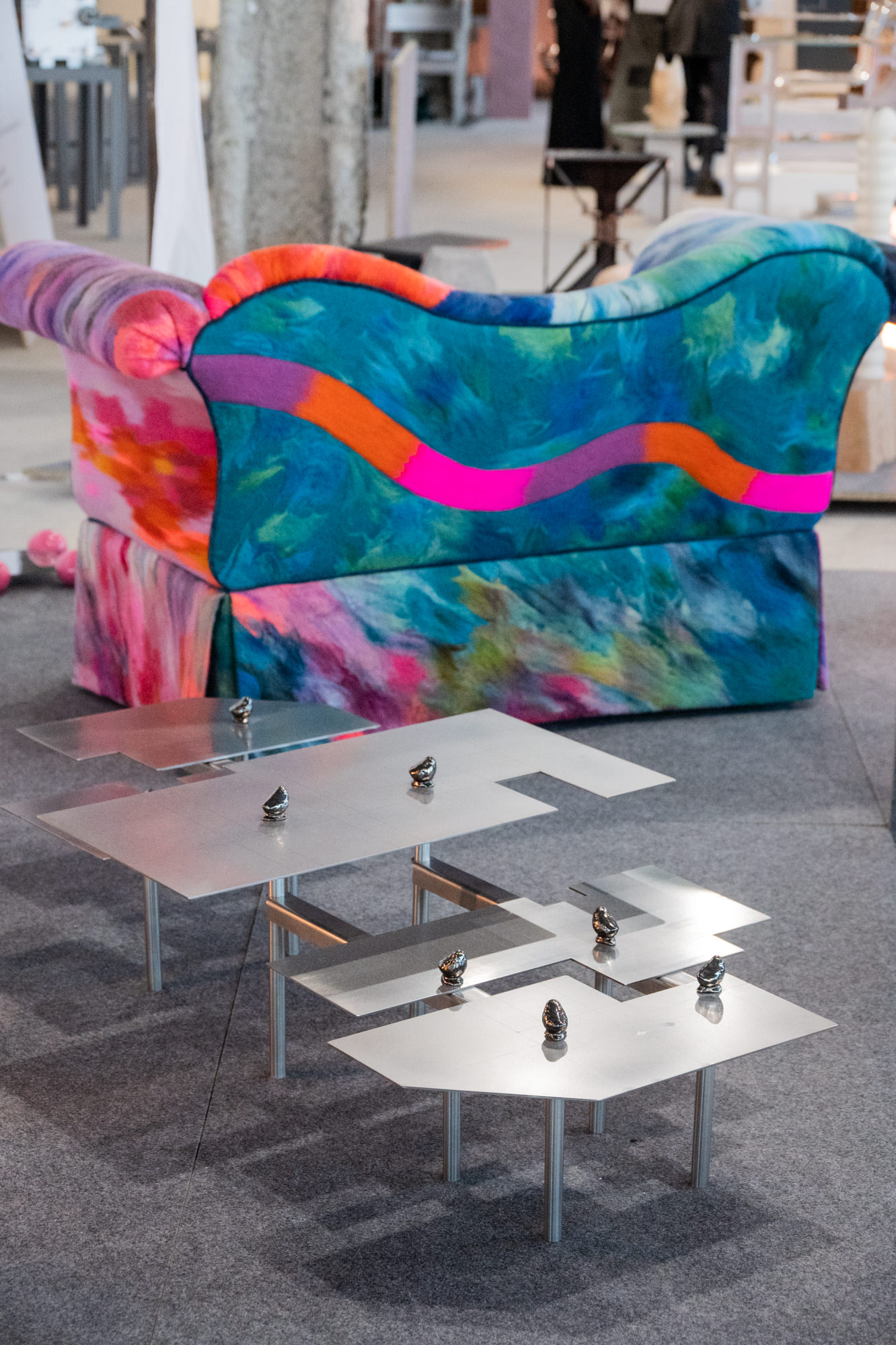 The 123 exhibitors were organized in seven categories, Main, New Garde, Bespoke, Vignette, Curated, Fashion and Special Projects. However the overall tone of the show was pretty aesthetically similar. The majority of the work reflected sculpture, handmade and simple form characteristics. A lot of pieces were on the edge of functionality concerns and created more for interior design drama. The typical ‘luxury’ living unit in NYC is a majority glass walled space so maybe the only place or art left is on the floor.