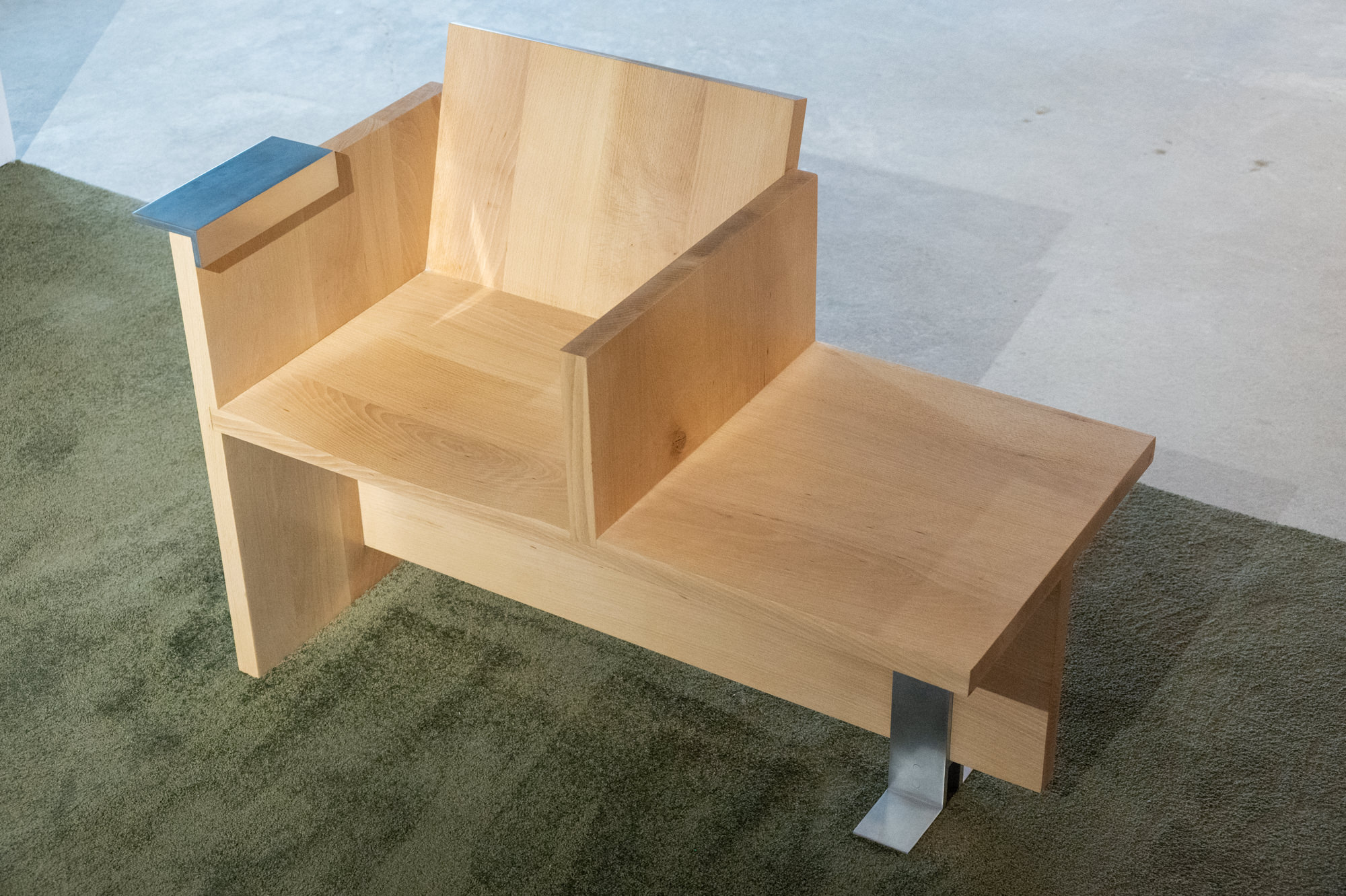 Lastly the Brochette chair from Montreal-based Atelier Alz x Alexis & Vanessa is an interesting take on the typical lounge chair design. Made completely of wood, the three seat and leg panels are joined to two rails that appear to cantilever in space.