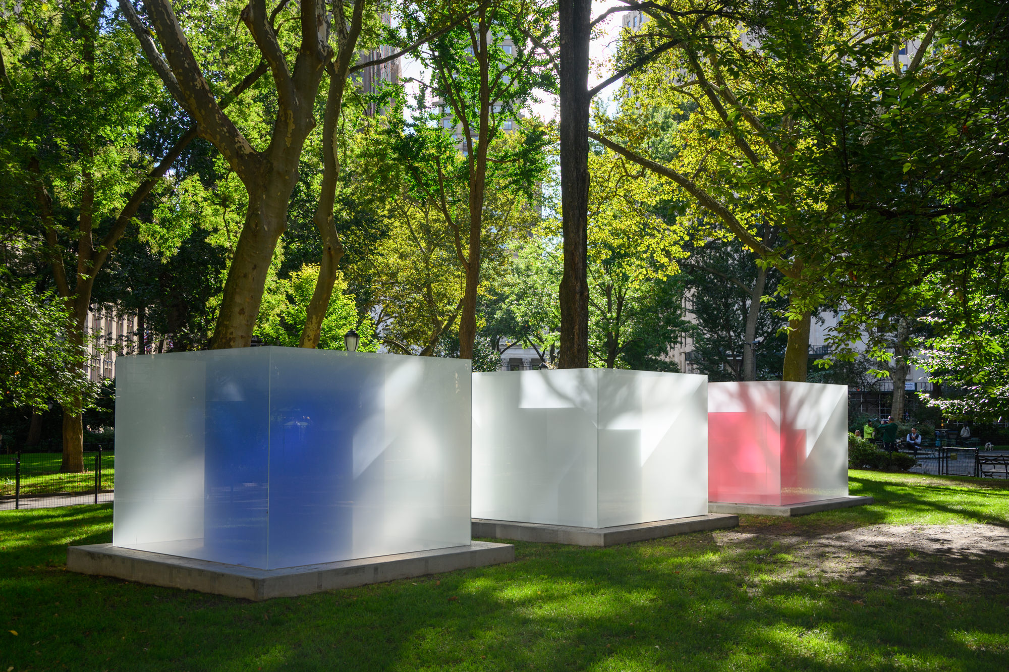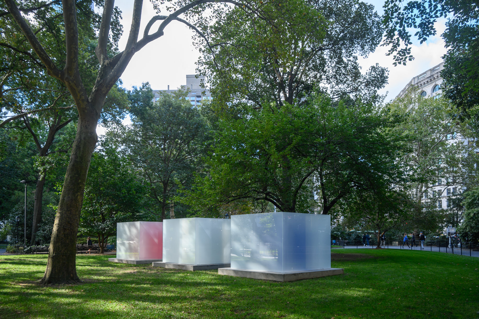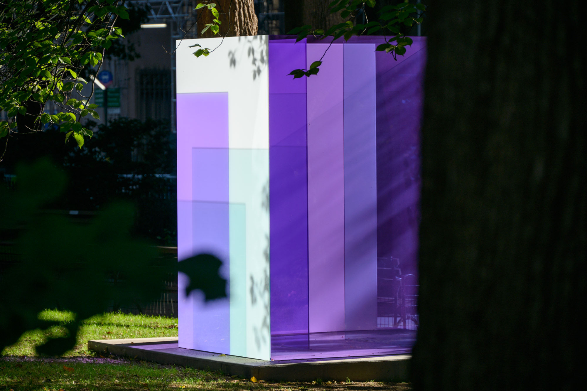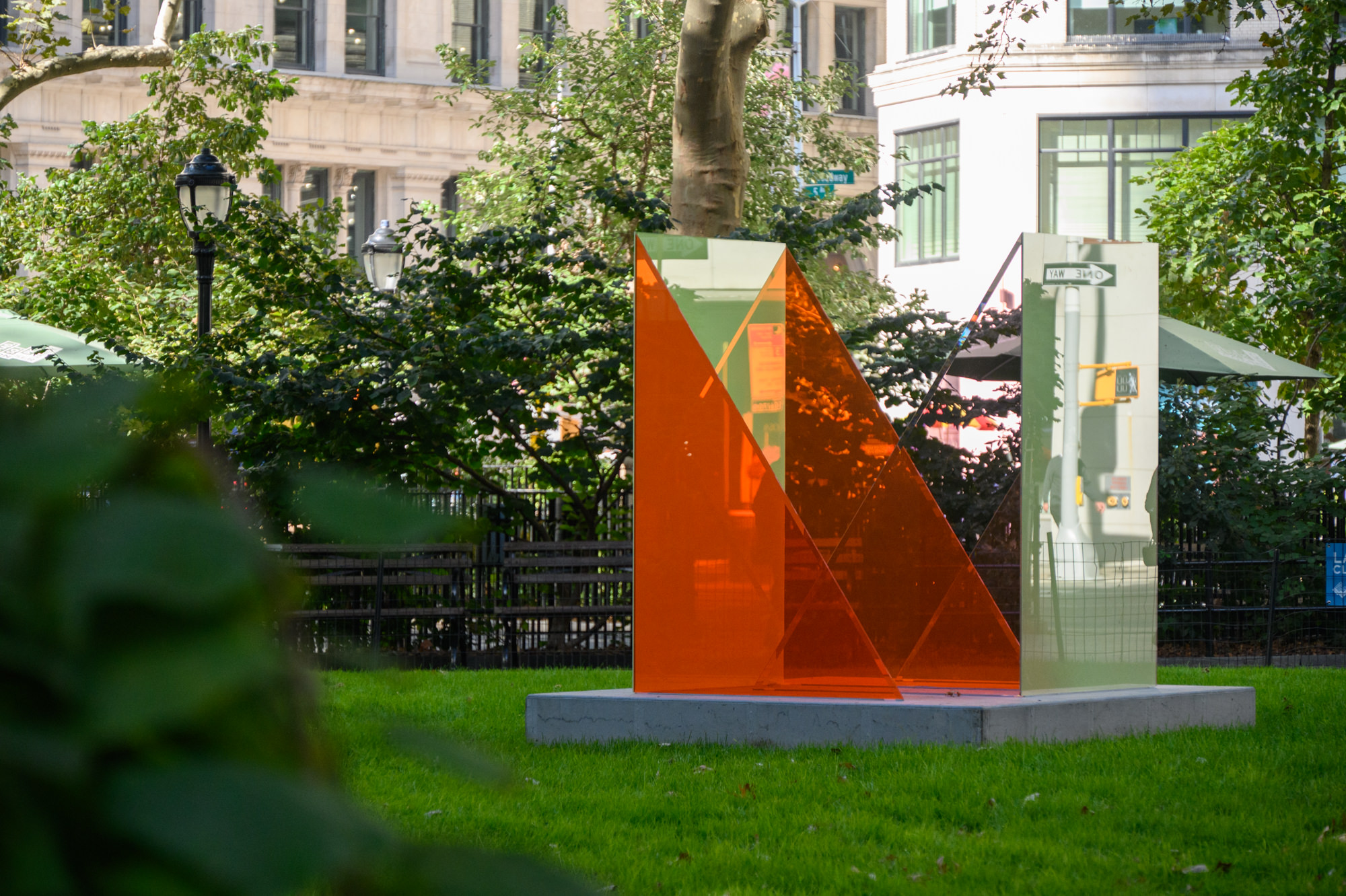 In the end, Improvisations in the Park amplifies the sensory relationship between light and glass that first piqued Bell’s interest; and he invites viewers to partake in a wondrous exploration of the material, while also witnessing Madison Square Park reflecting anew in the glassy surfaces.