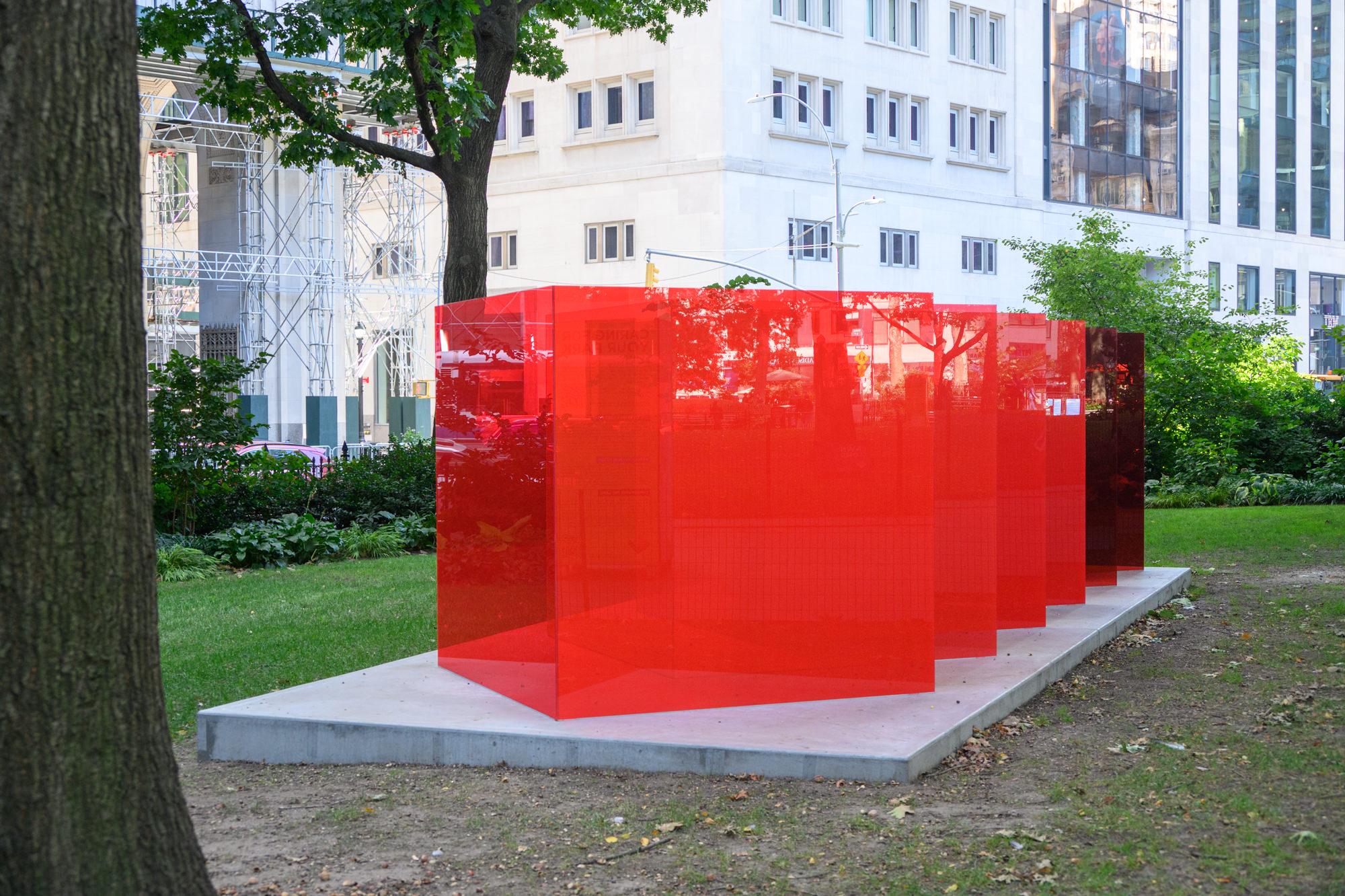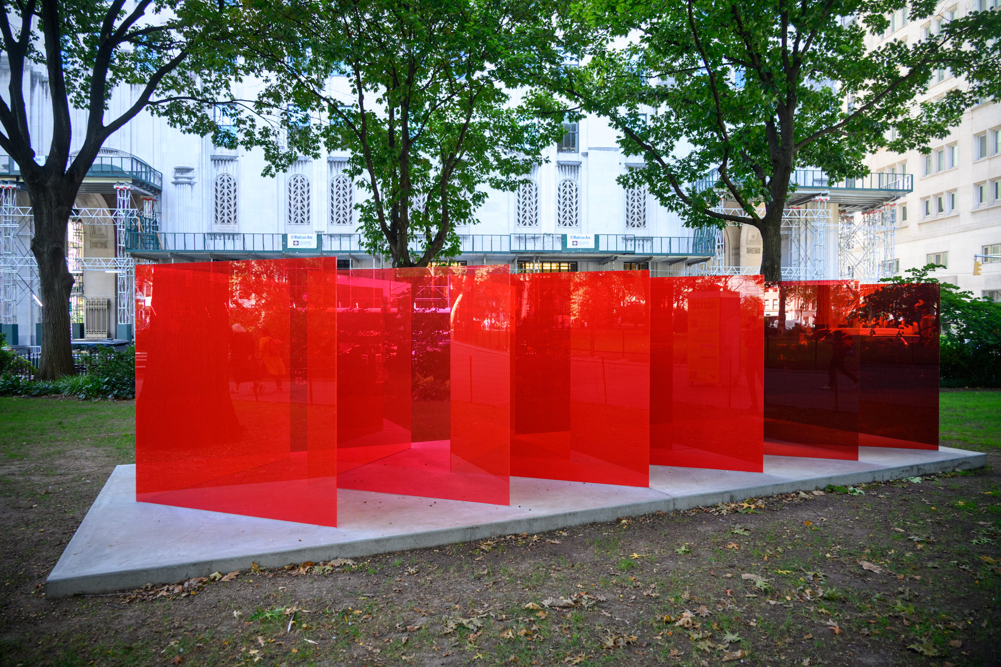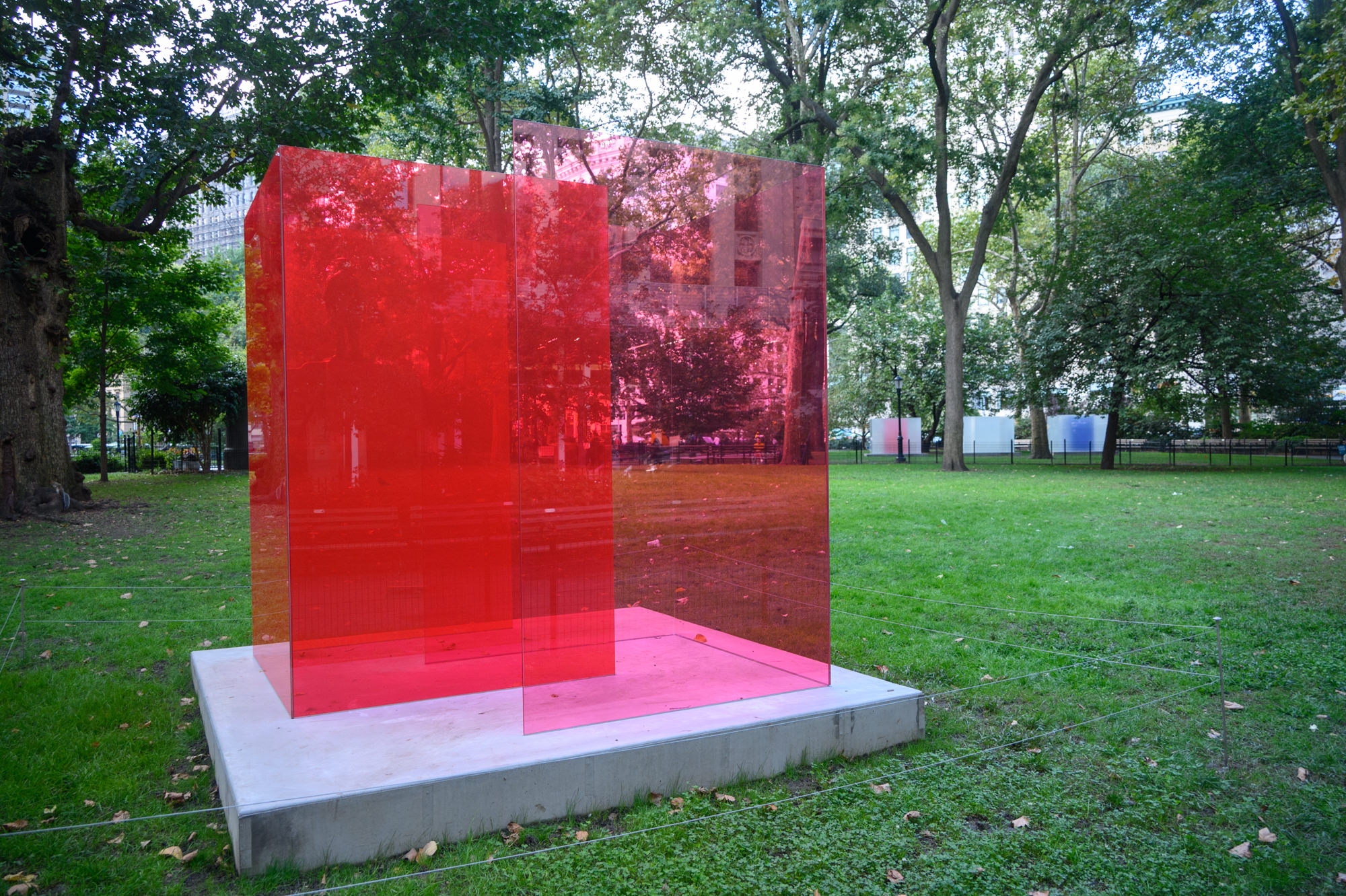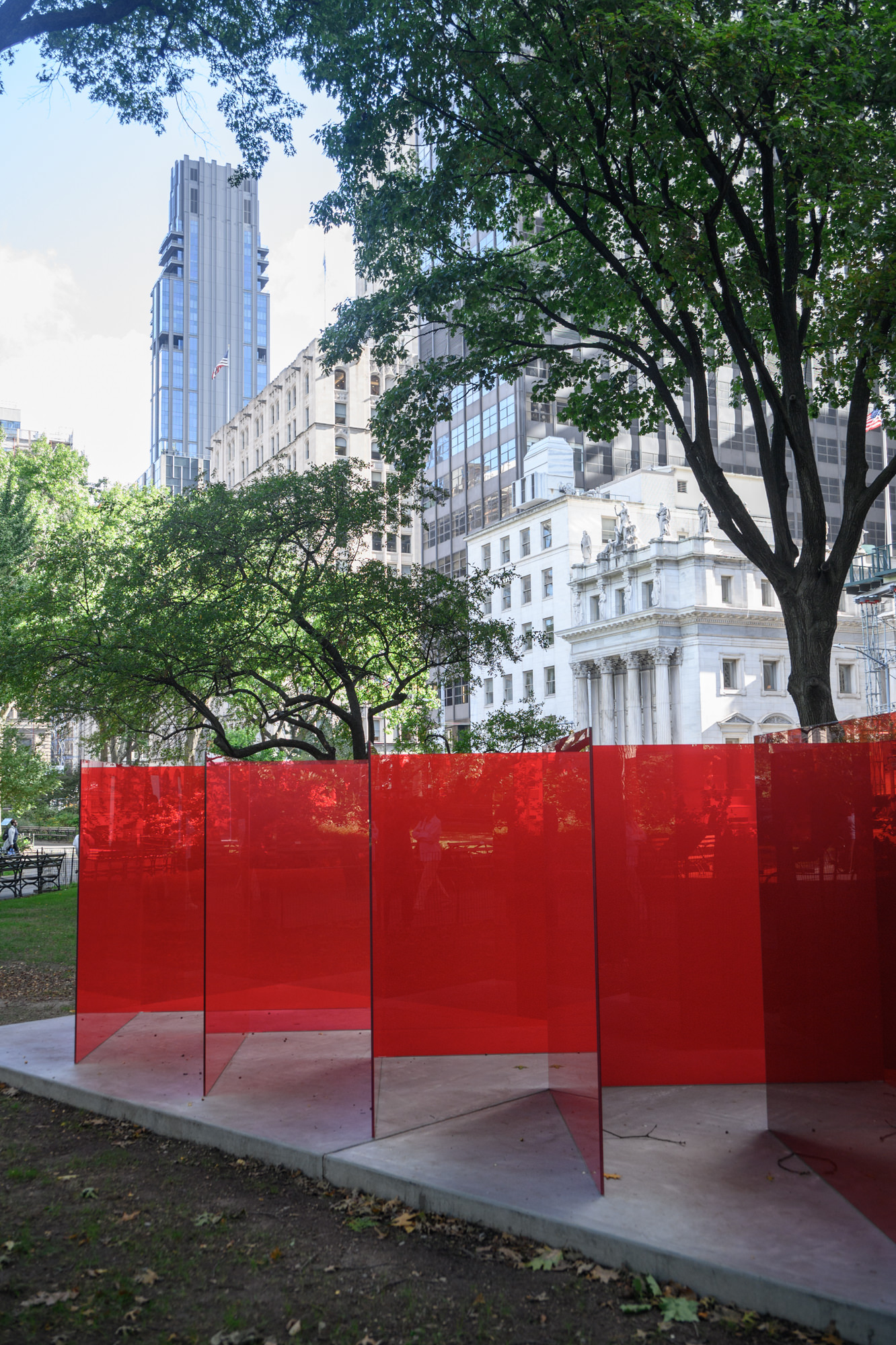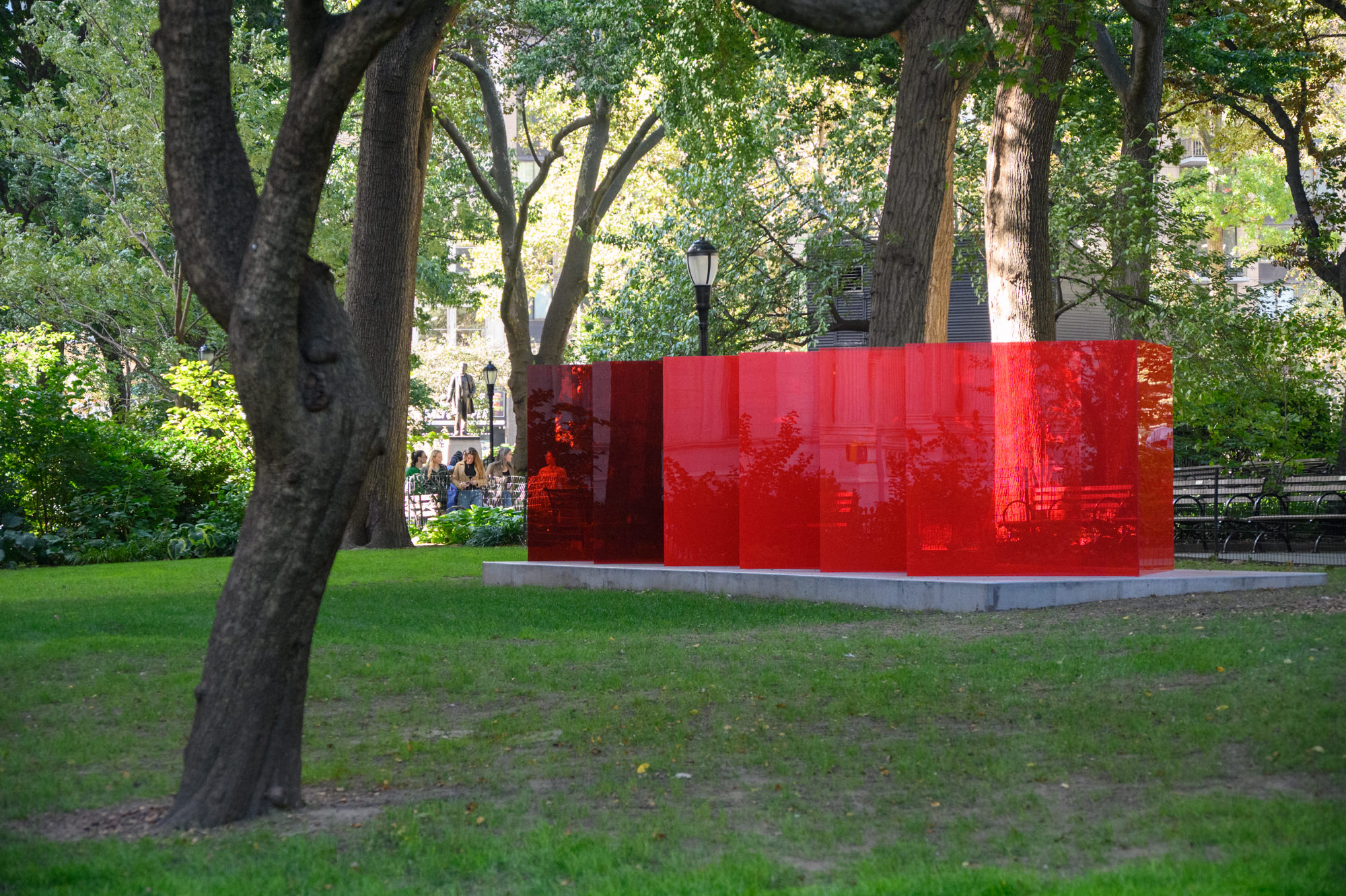 In the end, Improvisations in the Park amplifies the sensory relationship between light and glass that first piqued Bell’s interest; and he invites viewers to partake in a wondrous exploration of the material, while also witnessing Madison Square Park reflecting anew in the glassy surfaces.