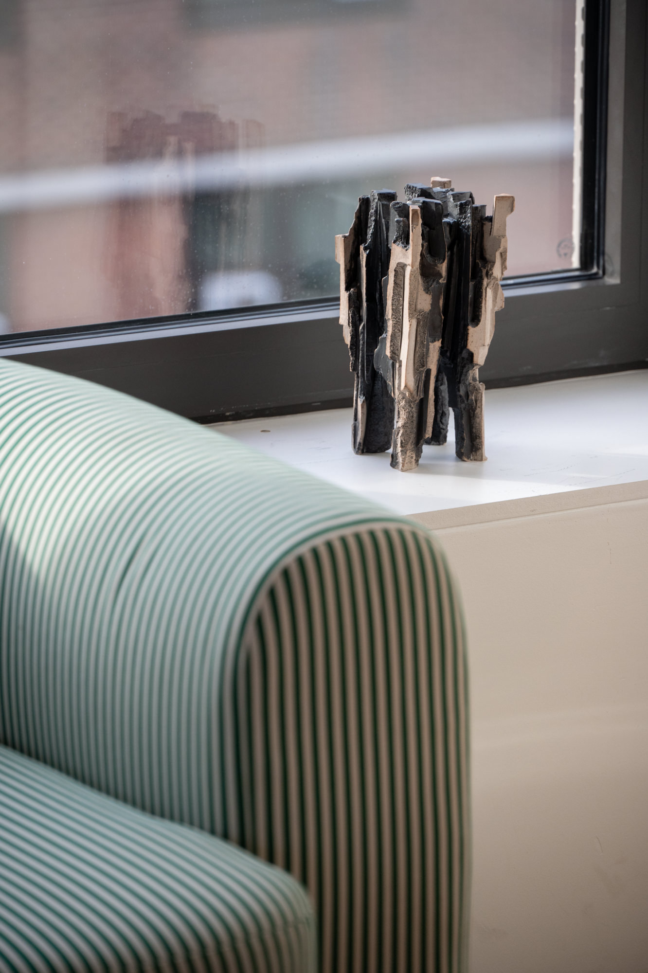 Fresh Pond is a collection of furniture and lighting with a pulse. Alive with contrast, clarity, humor, and heart. It marks a new chapter for Dokter and Misses, the Johannesburg and New York studio that finds poetry in the awkward and truth in the precise, where function meets feeling. The collection is paired with works by South African–born, New York–based artist Alex Koutny, who carves and erodes clay with handmade and construction tools, revealing forms that reflect the decay and ambition of modern architecture.