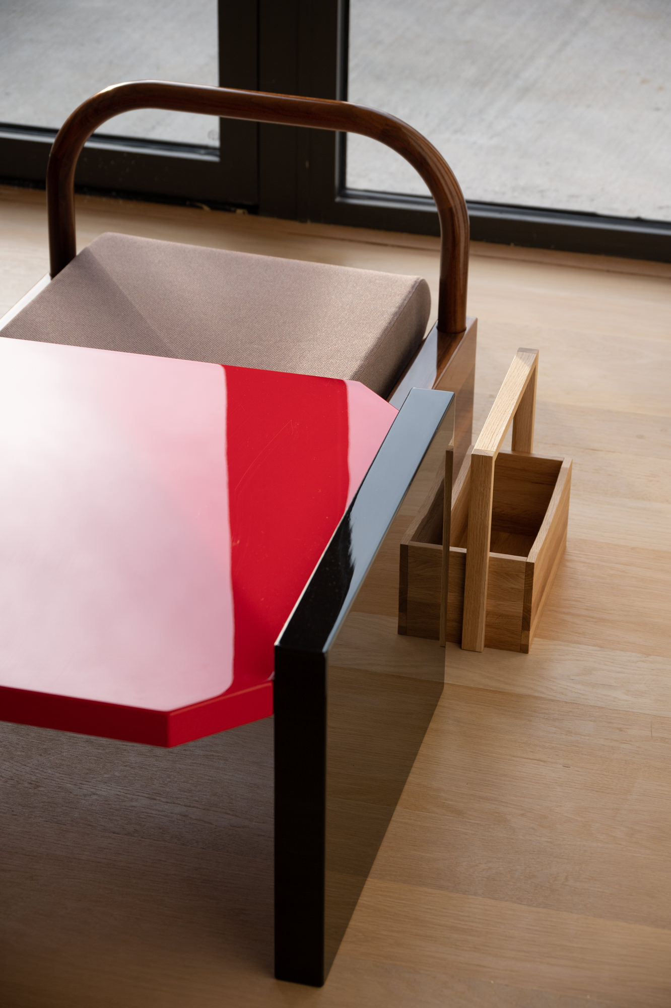 Wagetsu by Waka Waka and Karimoku offers a modern take on traditional Japanese furniture. The low seating and tables incorporate nods to joinery and lacquer brought forward from the past.