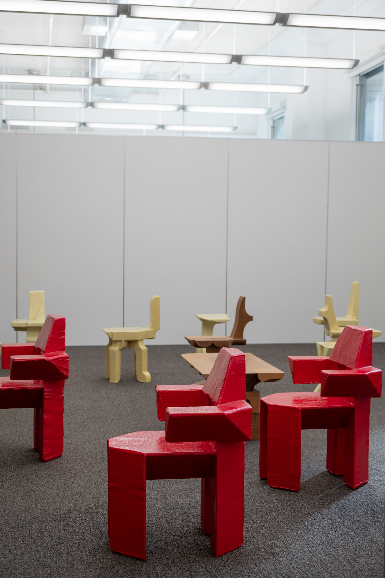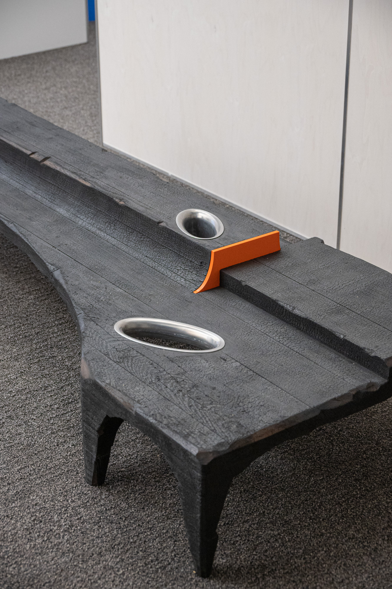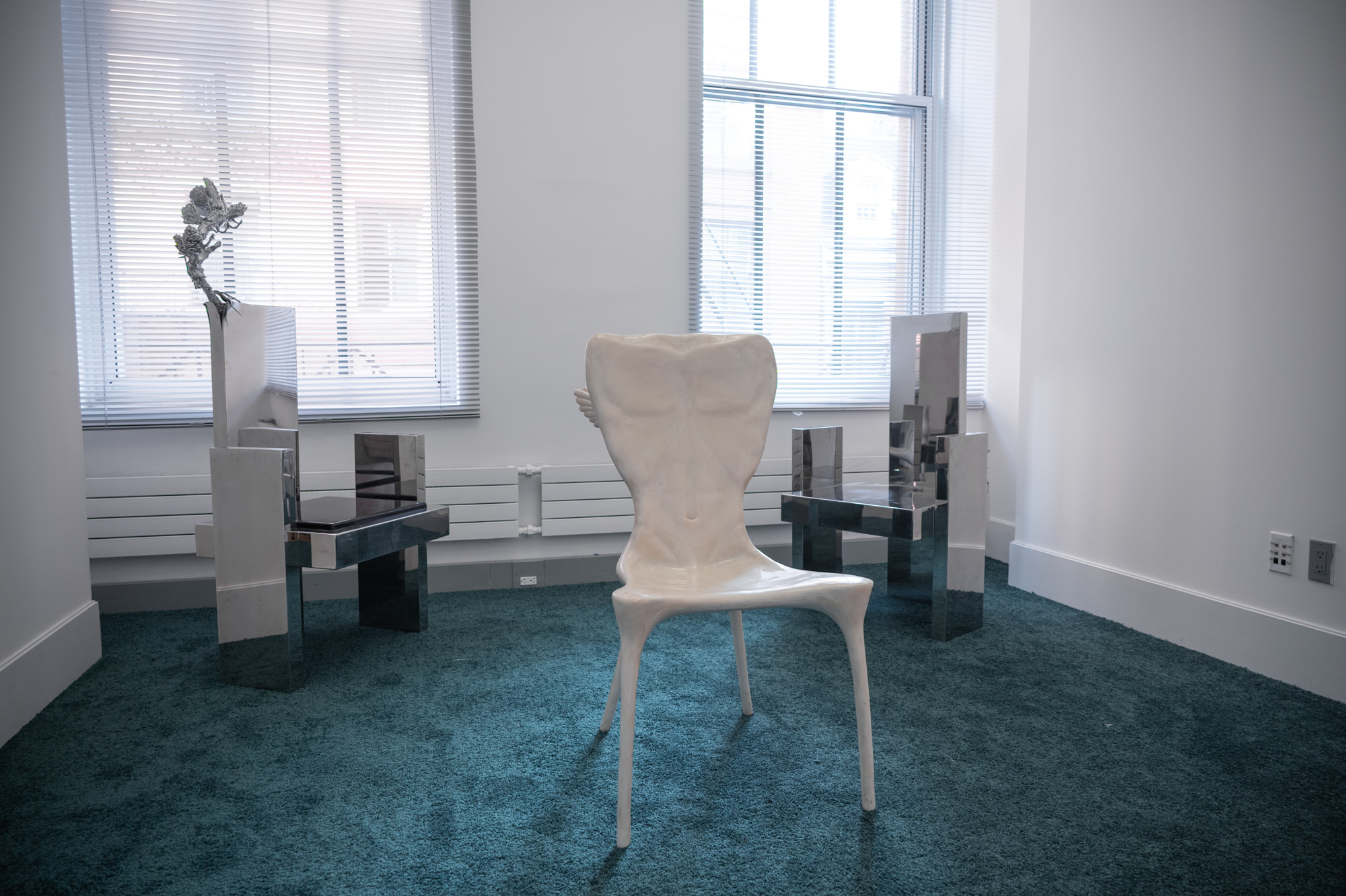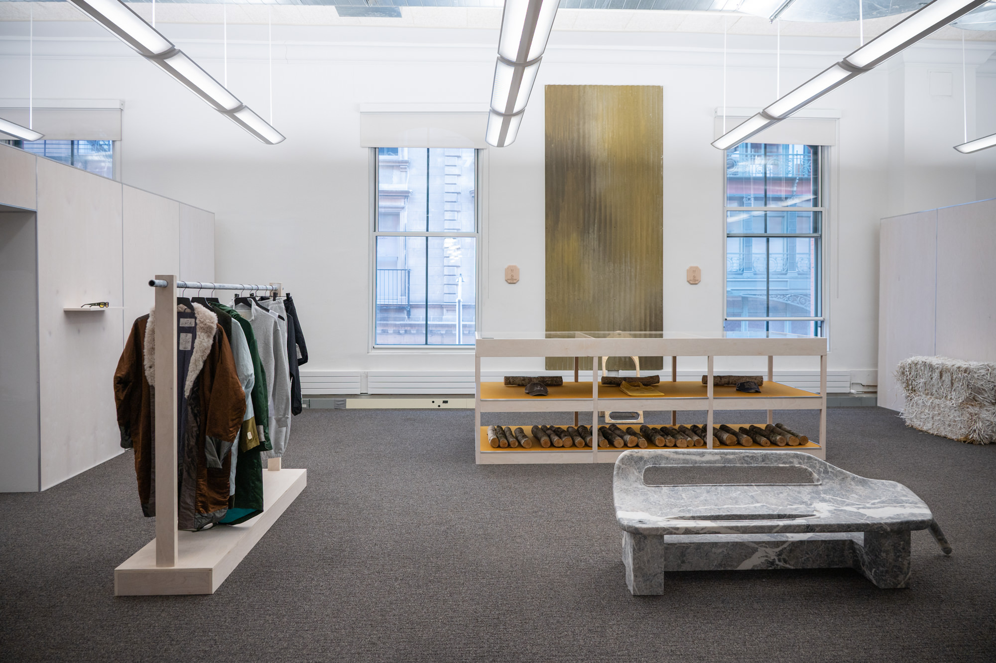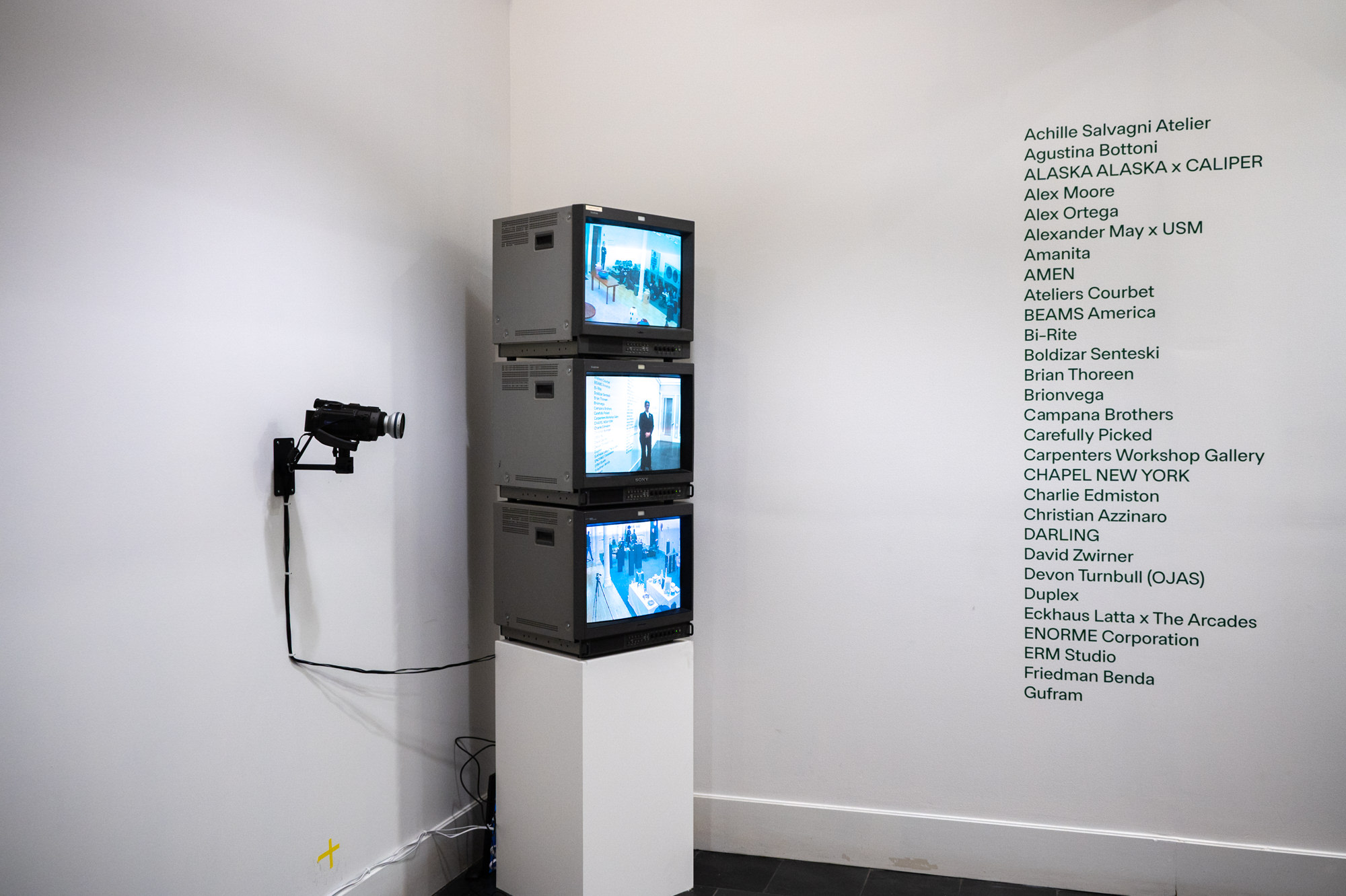 This three day event is heavily design object focused but is expanded to include art and fashion. It occupied a former 20,000sqft office space above the Prada store in Soho. For essentially a one weekend only run, the space was nicely planned with discrete wayfinding graphics and freshly laid carpet. Just off the elevator in the lobby was a Nam June Paik-inspired security camera feed of a few of the interior spaces.