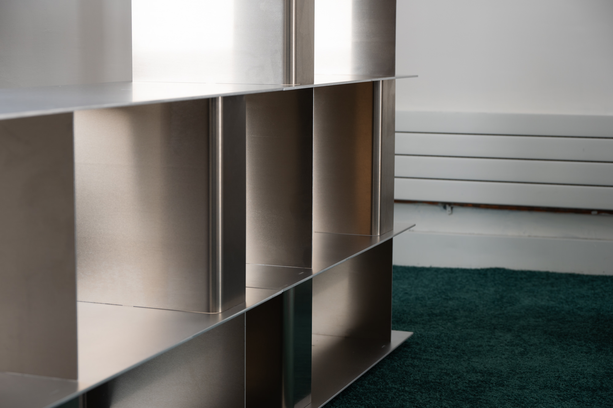 Two favorites were the Stack modular aluminum shelving from Studio Moto that felt in context with the space’s former life as an office.