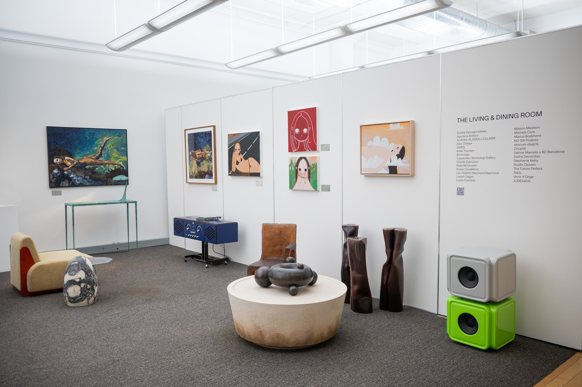 The event’s intention is shopping focused with nearly everything presented available for purchase through the Basic Space app. But my walkthru felt more like hopping from tiny gallery spaces to more expansive installations like Devon Turnbull’s listening room.