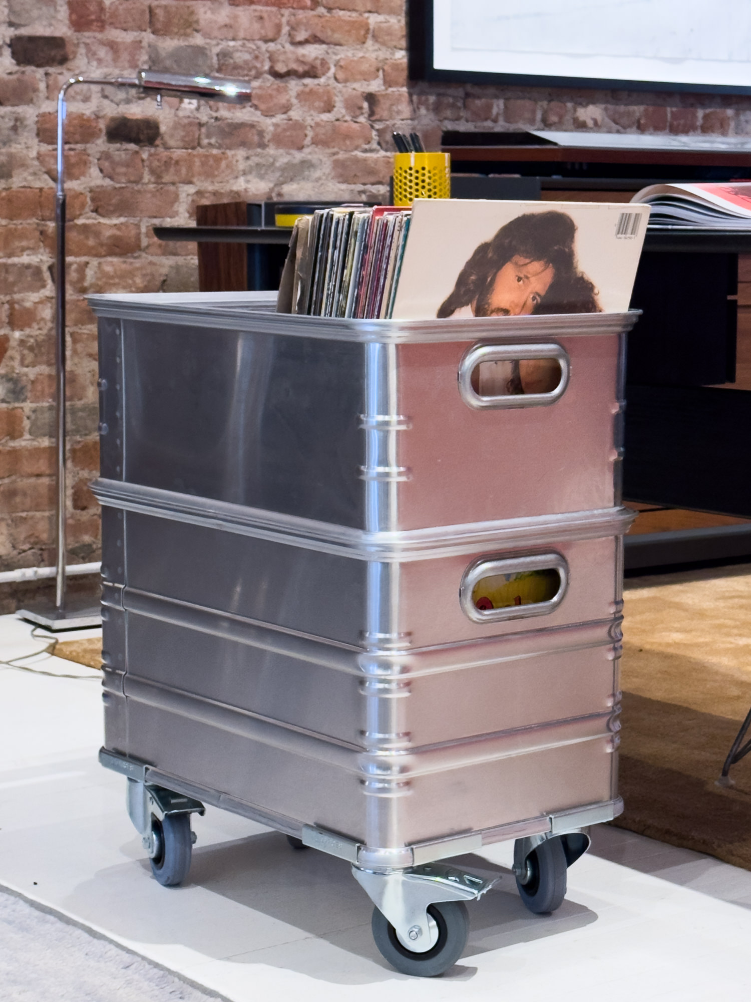 The second project is a prototype for a modular record storage system adapted from aluminum crates made by an overlanding accessories company. It’s a different direction from Symbols other furniture derived vinyl storage towards a rugged functional aesthetic.